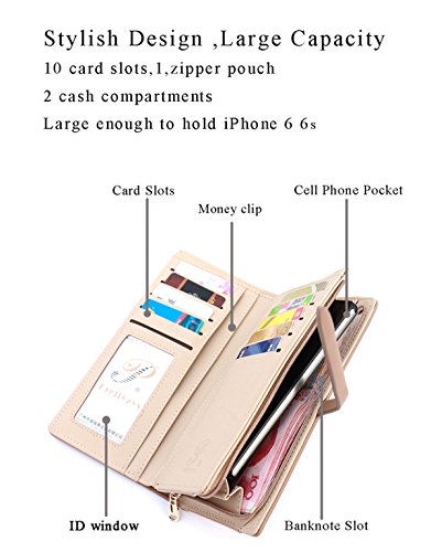 Spacious Interior :10 card slots,1 zipper pouch,1 cash compartment,1 ID windowIt can easily hold your business cards, ID cards, keys,cash,notebooks, etc /