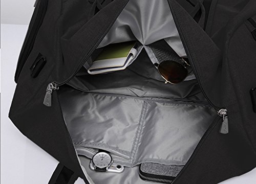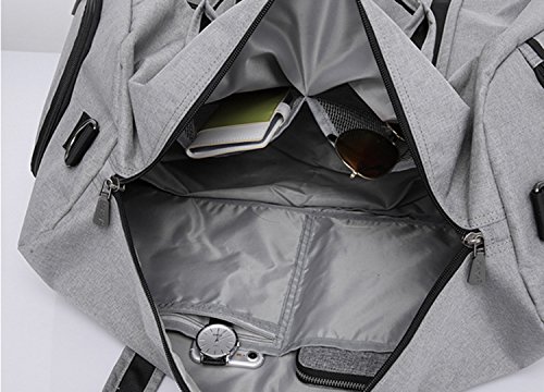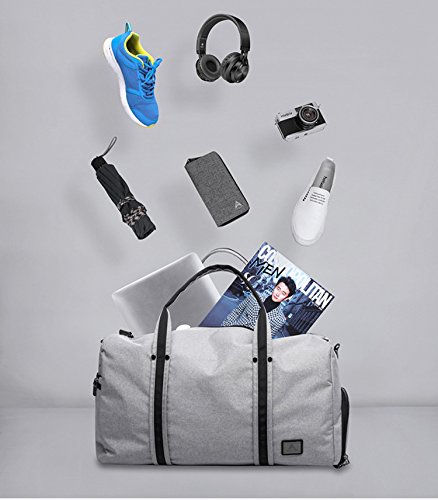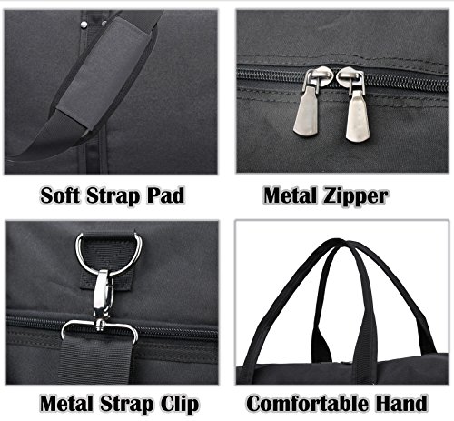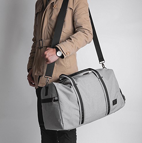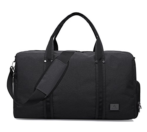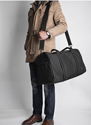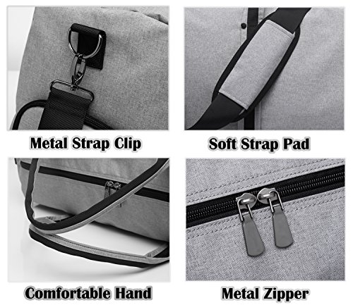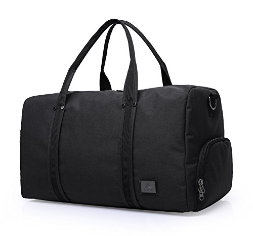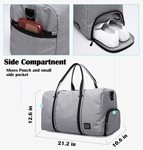 Brand: Yenyoh Description: Travel bag/Gym bag/Weekend bag/Luggage bag Size:21.2 x 10.6x 12.6 inches; Fits up to 17 inches laptop. Weight: 2.5 lb Color: Black / Gery Material: Oxford Nylon cloth Construction: 4 main compartments can provide a separated space for your cloth, shoes, electronics accessories, travel Accessories, toiletries and more.fixs up to 17 inch laptop Style: Simple/Styish/Steady/Light Weight