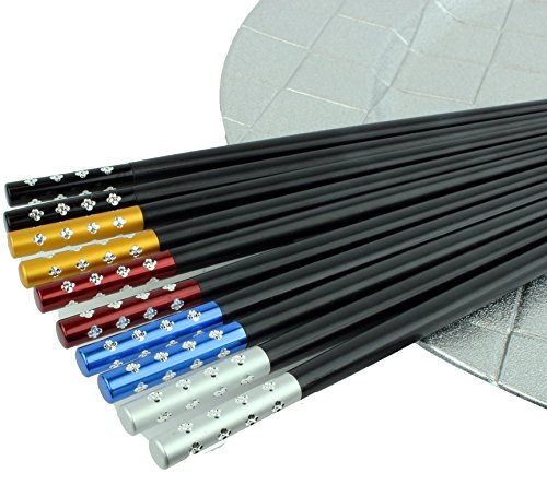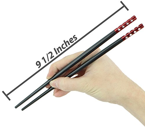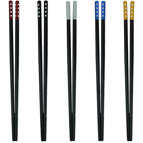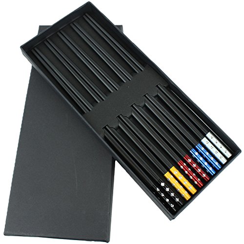 Classic set of Japanese style chopsticks comes with 5 pairs in various colors (Black, Gold, Red, Blue and Silver). Made from a lightweight and dishwasher safe material, they are reusable and easy to clean. The chopsticks are 9.5 inches in length and have a traditional tapered end for a comfortable grip. These chopsticks come packaged in a nice gift box, great for storage, travel or giving to a friend! 0 |