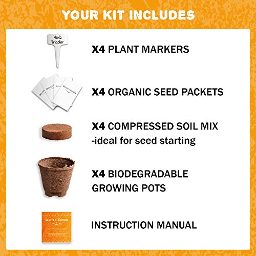 - EVERYTHING YOU NEED IN A BOX - This garden kit contains all the tools & equipment for growing an tasty and colorful garden: Instructions w/ essential growing tips; 4 seed packets, 4 biodegradable planters; 4 soil discs; 4 plant markers.
