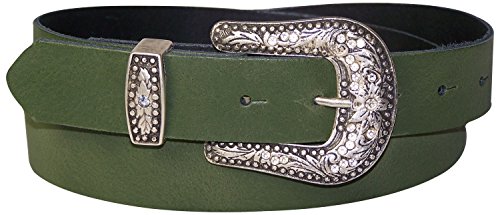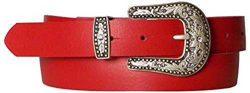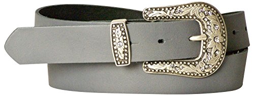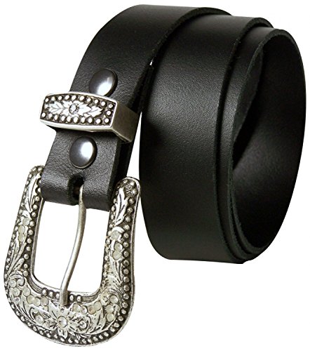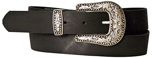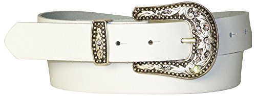Sweeten up your country look with the sparkling rhinestone buckle and loop of this Western women's belt. The belt strap is made of real cowhide leather and is available in an array of colors. Go for an all-out Western look by adding a fringed bag and rodeo-worthy boots. Belt colors: black, white, brown, cognac, red, gray and navy. The leather has a smooth surface and has been cut thin (5 - 7.5 oz. | 2 - 3 mm) to produce a flat and lightweight belt that does not add bulk. - Shipping takes 3-6 days in Europe and generally not more than 8-10 days to non-European countries.