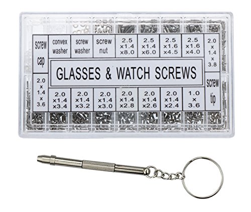 VAPKER 1000Pcs Micro Eyeglass Sunglass Spectacles Watch Repair Stainless Steel Screws Tool Kit with Screwdriver