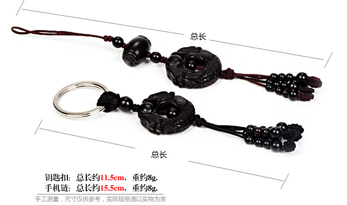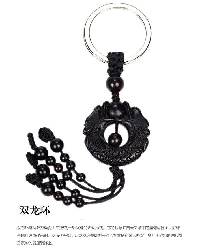 Product features: Ssangyong ring is two dragon play (or force) forms a fire ball. Its origins from the star diagram in astronomy, fire bead is evolved by the moon.From the Han Dynasty, dragons will become a kind of auspicious festivedecorative pattern, used for architectural painting and noble luxuriousglass decoration. Product introduction: Name: Ssangyong Ring Keychain mobile phone chain Material: Ebony Size: about 11.5cm long key buckle, mobile phone chain length of 15.5cm Weight: about 8G key buckle, mobile phone chain about 8G (net) Packaging: packaging, good fortune | ||