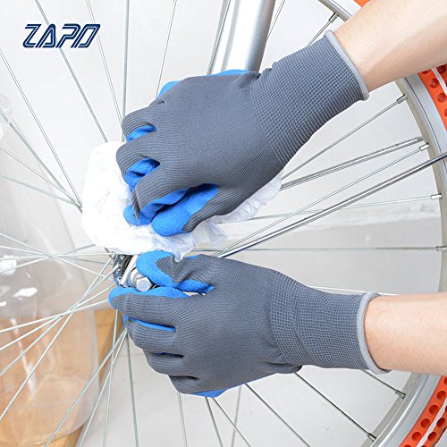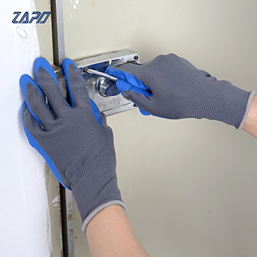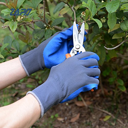 2 Pairs Large Gardening Gloves Work Gloves for Women and Men with Latex Coating - Suitable for Construction/Mechanical/Auto Industry, Gardening, Fishing - Blue&Grey Protection Gloves by Zapo