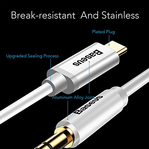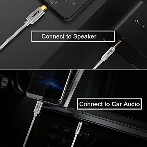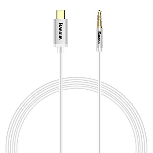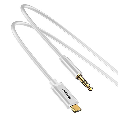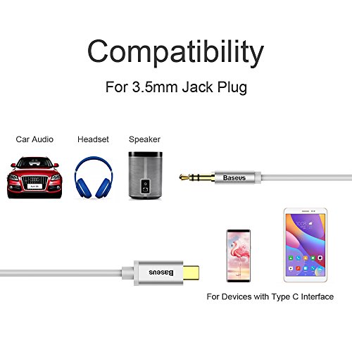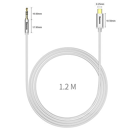 Brand: Baseus Product name: USB Type C to 3.5mm male aux jack Compatibility: all without 3.5mm aux jack USB-C mobile phones, except HTC Material: PVC braided aluminum shell Wire: Gold-plated Connector: 3.5mm male jack, Type C male jack Cable length: 3.9ft/ 120cm Color: Black
