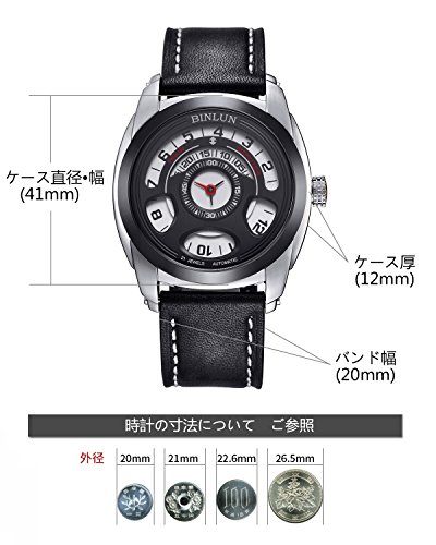 -. Title : 腕時計 メンズ 自動巻き BINLUN 機械式腕時計 ブラック オリジナル シースルーバック 本革レザーバンド おしゃれ メンズウォッチ [並行輸入品]