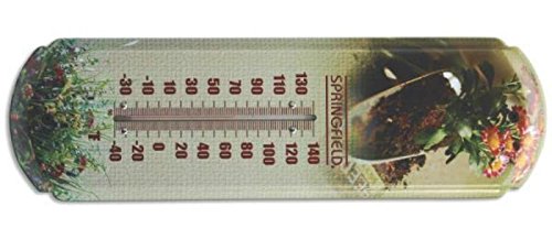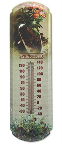 -. Feature : Metal thermometer with flowers artwork. Temperature range of minus 40-140 degrees F. Durable, fade resistant finish. Glass spirit-filled thermometer tube. Hang with screws or nails (not included). 17"H x 5"W. / THERMOMETER / FLOWERS / INDOOR/OUTDOOR , EA