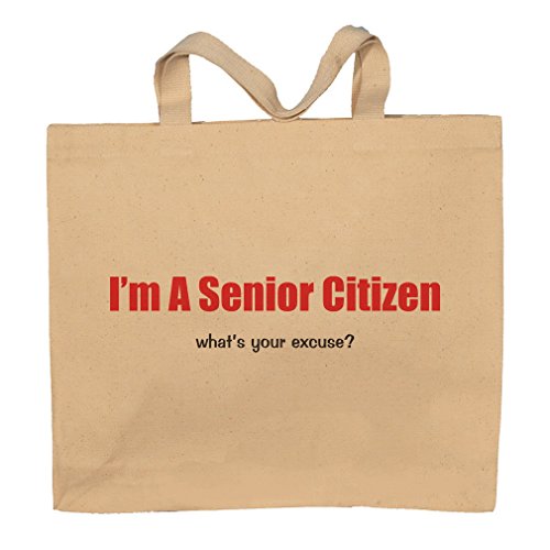 Binding : Apparel Product Description I'm A Senior Citizen what's your excuse? . A Fun way to show how you feel with a totebag. The Design/Saying is printed on the front of this canvas tote bag. We use the newest best technology to print the design with great inks that are cured into the product. This new high tech way of producing garments is very fade resistant. WE DO NOT USE TRANSFERS. It is great, since you dont have that thick transfer feeling. The feel is very smooth and comfortable. 0