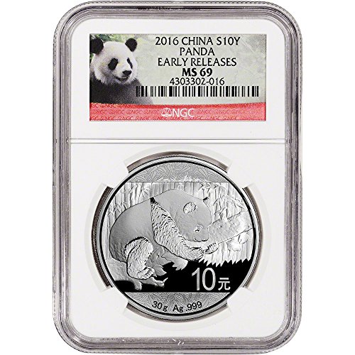 2016 CN China Silver Panda (30 g) Early Releases - Red Panda Label 10 Yuan MS69 NGC