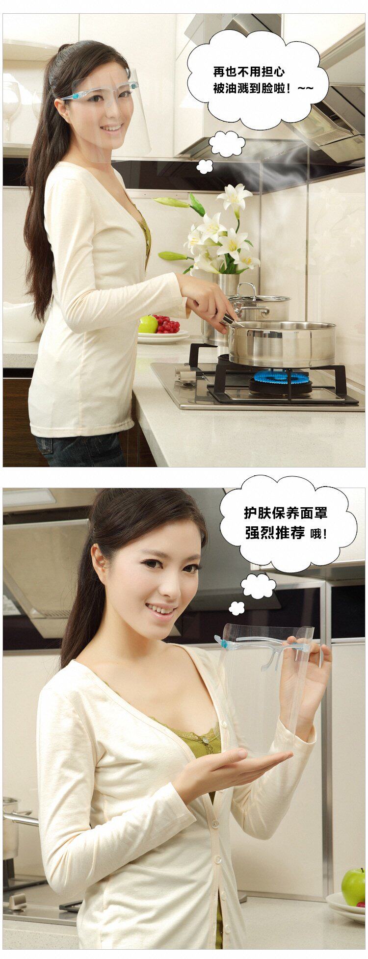 Description: kitchen oil splash mask: dual anti-fog lens on both sides, so you always clear vision.