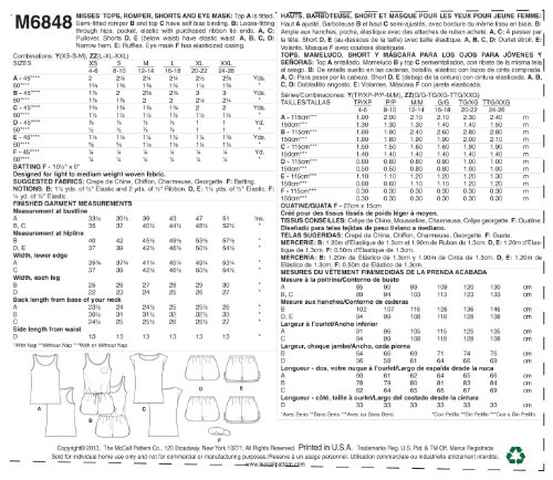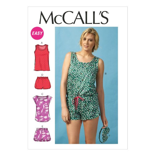 -. Title : McCall Pattern Company M6848 Misses' Tops, Romper, Shorts and Eye Mask Sewing Template, Size ZZ