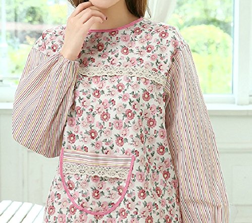 Bib Apron/Waist Apron, Practical Kitchen Art/Chef Smock With Long Sleeves, Household Articles; Aprons With Pockets, Cotton, 1 PCS, 85CM*52CM, Gypsophila Flowers Patterns, Pink