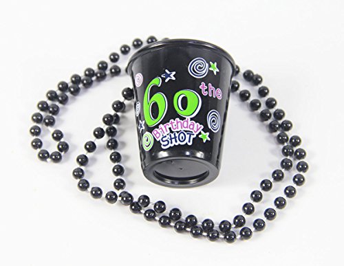 LOVELY BITON® 60th Happy Birthday Shot Glass Plastic Black Cup Lettering with a Fun Confetti Background Set of 2