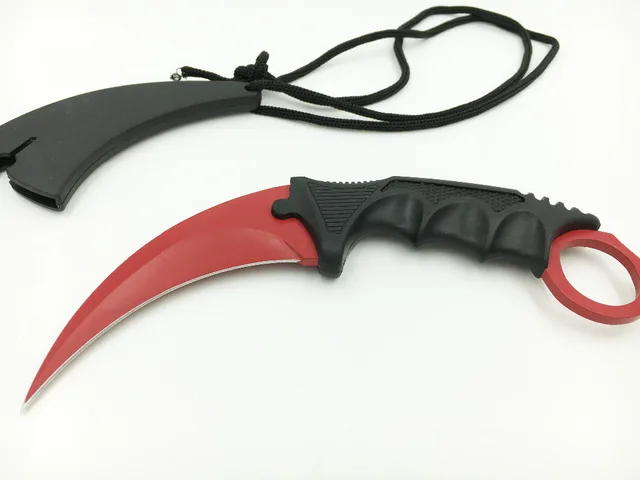| [해외] Cs 이동 카운터 스트라이크 발톱 karambit 나이프 목 칼 칼집 호랑이 치아 진짜 게임 칼 발톱 칼 캠핑 레드 컬러 |