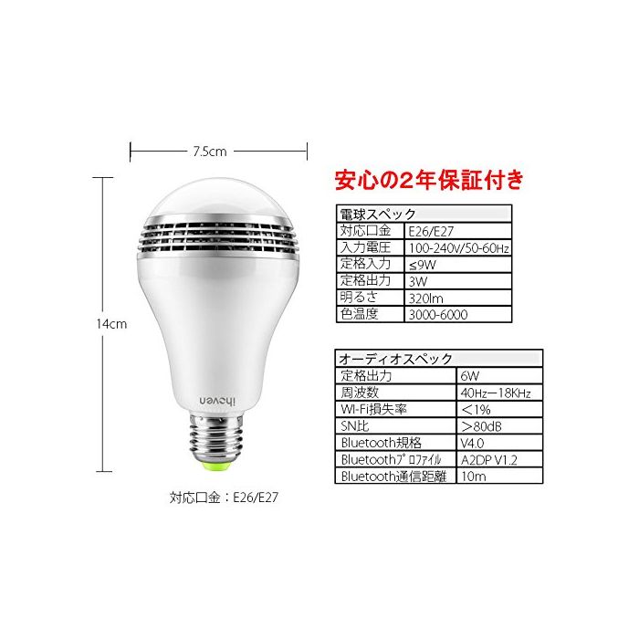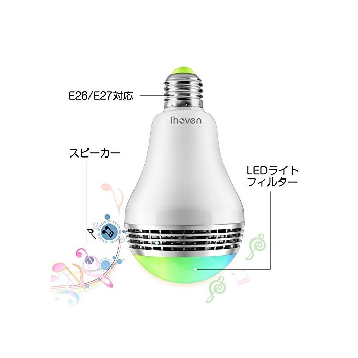 원본상품명: iHOVEN スマトLED電球RGBワイヤレススピカBluetooth4.0LEDライト 電球 すぴか 照明bluetooth 音再生 調光調色可 スマホ操作 E26/E27口金