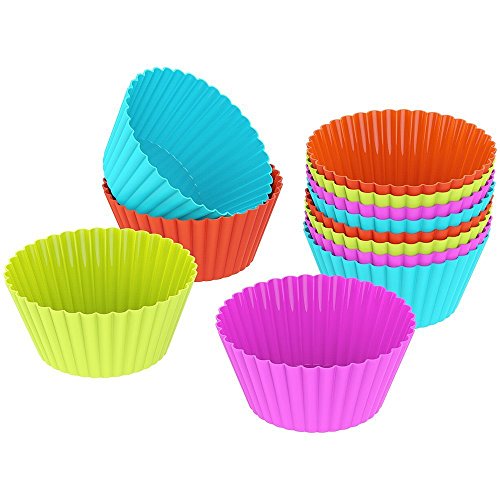 MUMUTIPS 24-Pack 7CM Silicone Reusable Cupcake and Muffin Baking Cup,Random Color (Round)