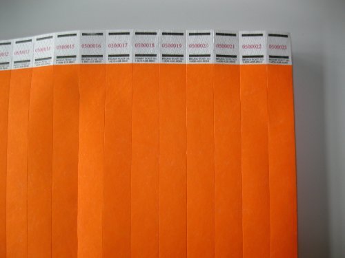 -. Feature : 50 Solid Neon Orange Consecutively Numbered Tyvek Wristbands 3/4 In / waterproof, durable, great one time use / made from Dupont-Tyvek materials