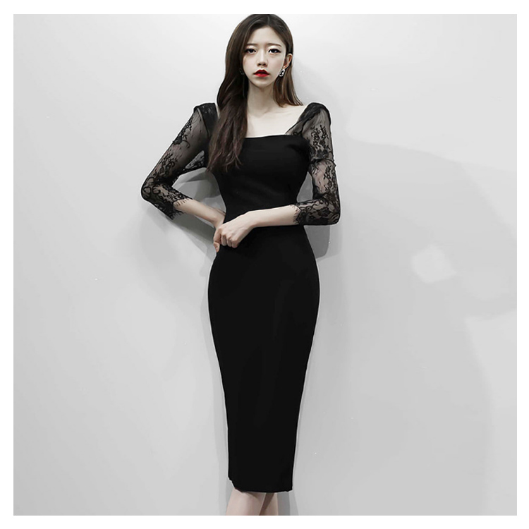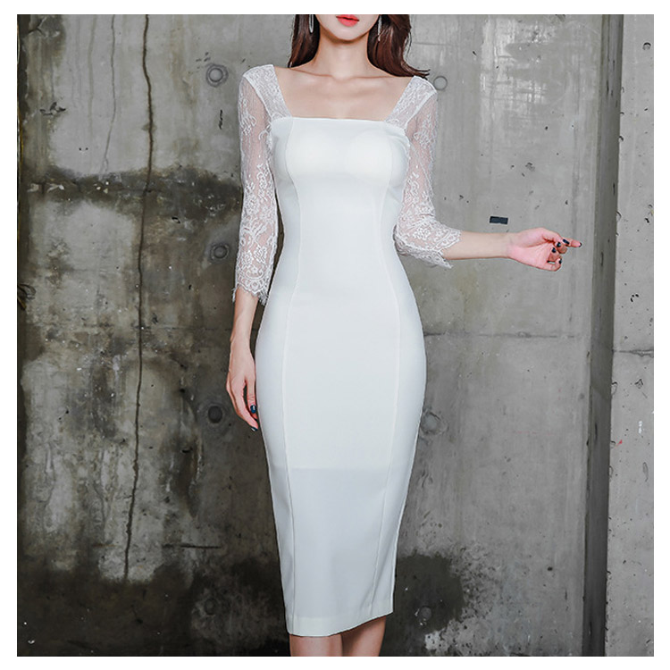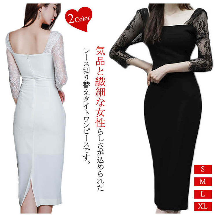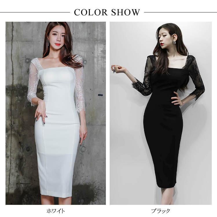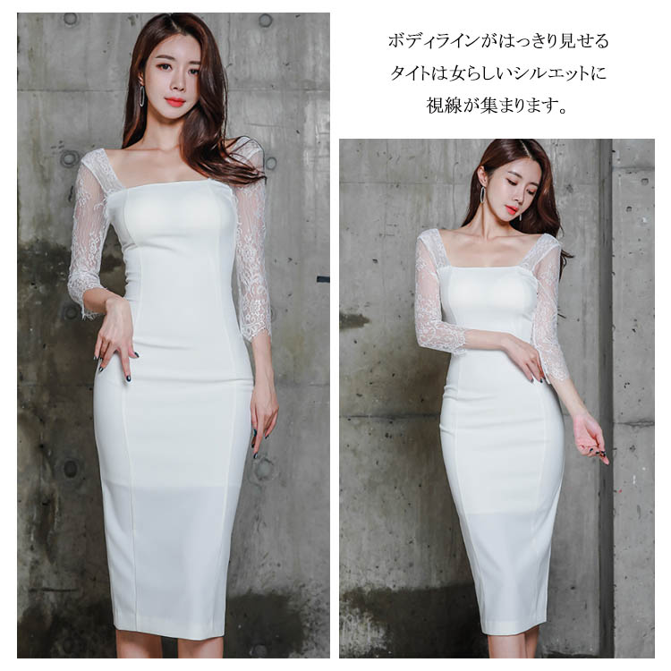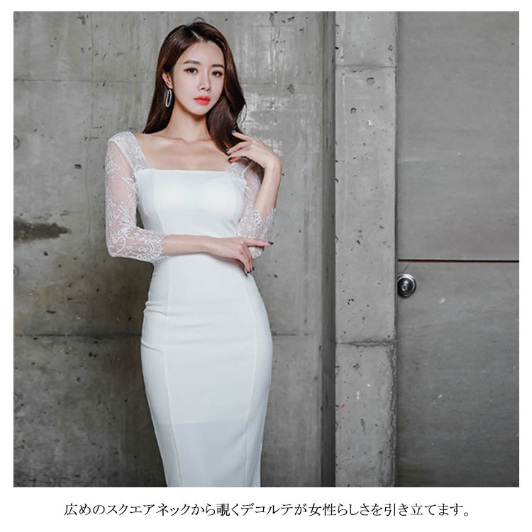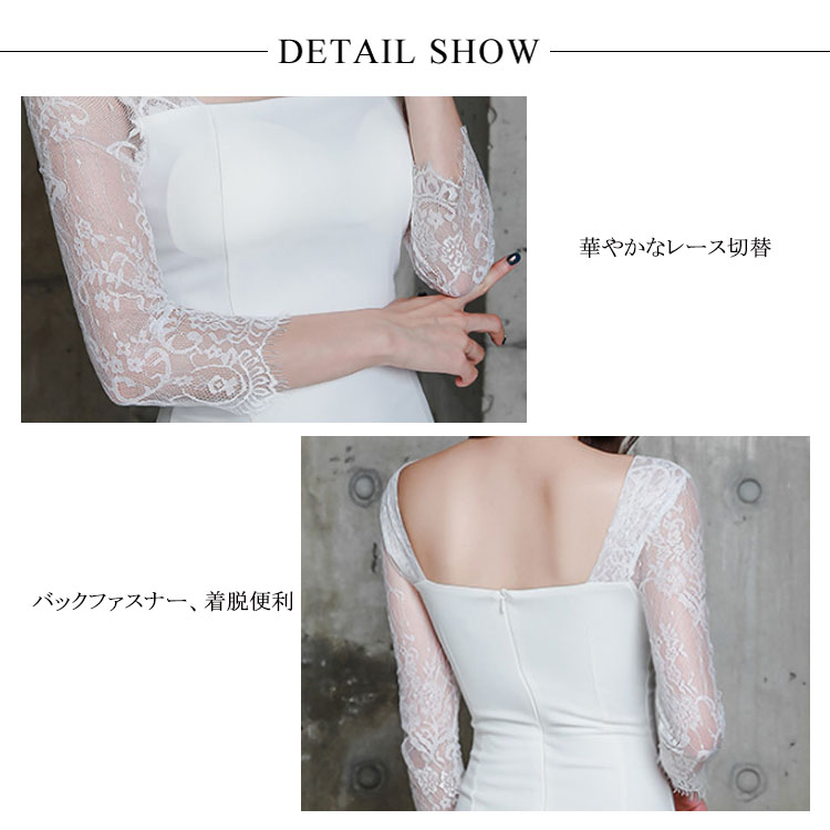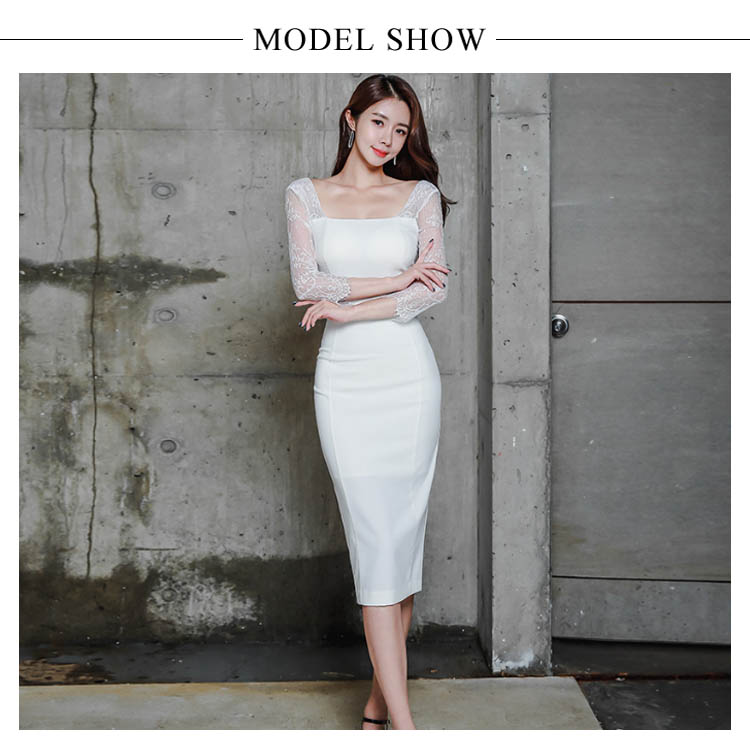 | 気品と繊細な女性らしさが込められた レース切り替えタイトワンピースです。広めのスクエアネックから覗くデコルテが女性らしさを引き立てます。ボディラインがはっきり見せるタイトは女らしいシルエットに視線が集まります。結婚式の披露宴や二次会、パーティーや謝恩会などに上品なドレッシーさを加速させるデザインです。 | |