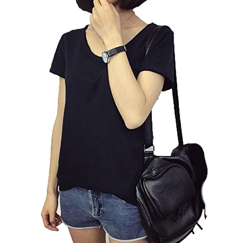 -. Title : (ドチィン)DaoCheng 夏 Tシャツ Vネック レディース 無地 半袖 ベーシック ロンT トップス(ブラック8)