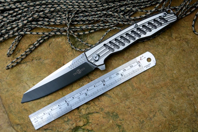 | [해외] TWOSUN TS-18 플리퍼 접는 칼 D2 새틴 블레이드 세라믹 볼 베어링 TC4 핸들 야외 캠핑 사냥 포켓 kni |