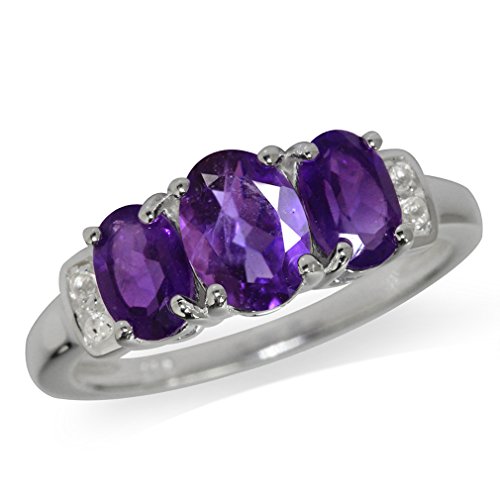 -. Title : 1.53ct. 3-Stone Natural African Amethyst & White Topaz 925 Sterling Silver Ring