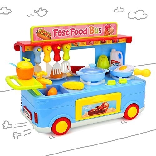 -. Title : Newisland Pretend Play Food Toys Moblie Cooking Bus with Series Kitchen Sets-30 Pieces