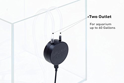 Air Pump by aPump Plus - Quiet Aquarium Oxygen Pump up to 60 Gallon for Small & Medium-Sized Fish Tank, Piezoceramic Technology & Energy Efficient with Filter Air Stone & Silicone Tube.