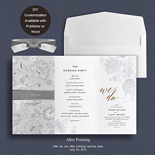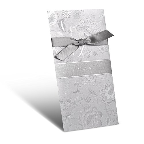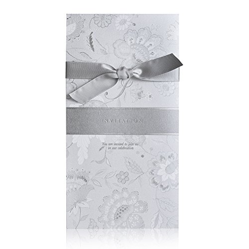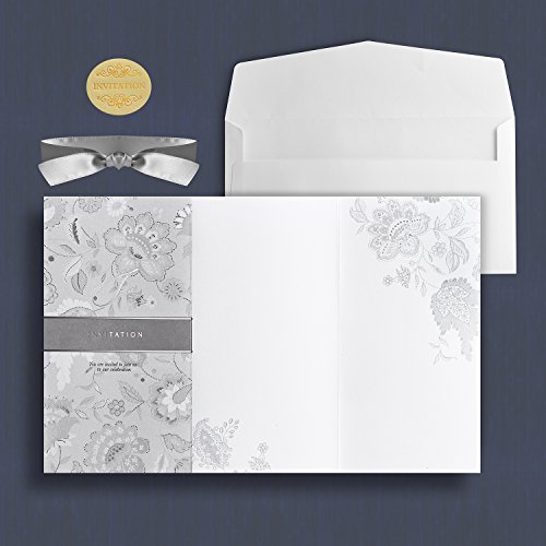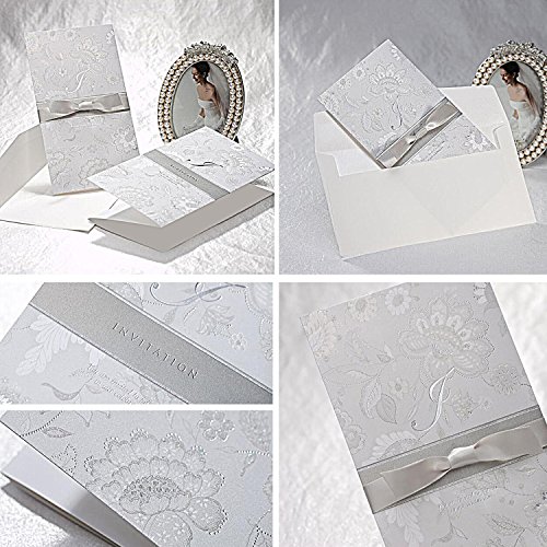 Weddingbob 1Pcs Foil Stamping Embossing Flora Design Wedding Invitations Cards Kit for Bridal Shower Dinner with Envelopes and Printable Paper Ocean-grey...