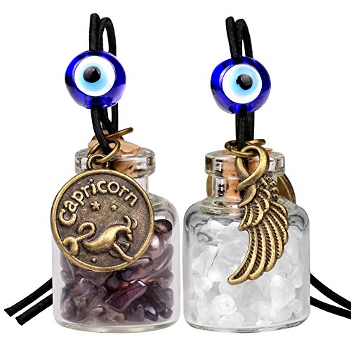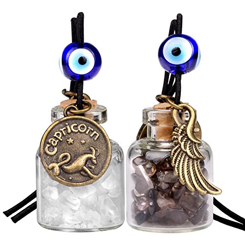 Zodiac Capricorn Angel Wings Small Car Charms Home Decor Gem Bottles Smoky and Quartz Birthstone Amulets