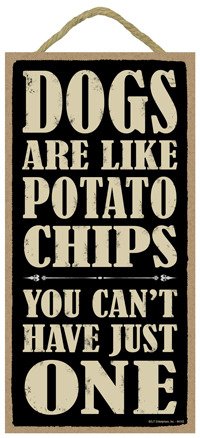 (SJT94145) Dogs are like potato chips you can't have just one 5" x 10" wood sign plaque