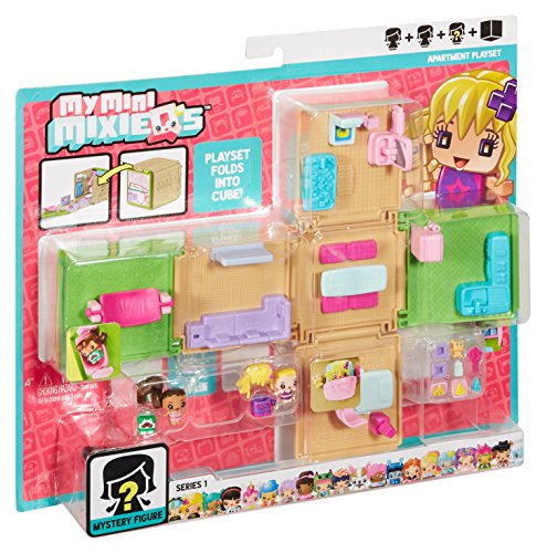 -. Feature : New small figure playset features kids' favorite settings / Folds up into a cube that fits in your palm / Unfolds to reveal multiple play areas, themed furniture, colorful details and 2 collectible figures / Each figure has Pop and Swap hair and outfits to customize your My Mini MixieQ's, your way / You can choose the Apartment, Park, Museum or Campsite playset Each connects to other Playsets and Mini Rooms to expand the fun!