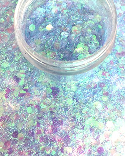 -. Binding : Apparel -. Brand : Rave Wonderland -. Color : Blue -. Department : womens -. Feature : 15 Gram Pot of Iridescent Chunky Blue Glitter. / 3x more than most sellers. / Multiple sizes of iridescent and Iridescent Blue glitter. / Perfect for raves, festivals, and special occassions. / Easy to apply. Use hair gel or glitter P.R.Imer to apply onto skin or hair. -. Model : GT001BLUE -. PackageQuantity : 1 -. ProductGroup : Apparel -. ProductTypeName : ACCESSORY -. Title : Blue Iridescent Chunky Glitter Large 15G Comestic Glitter Festival Rave Face Body Hair Nails