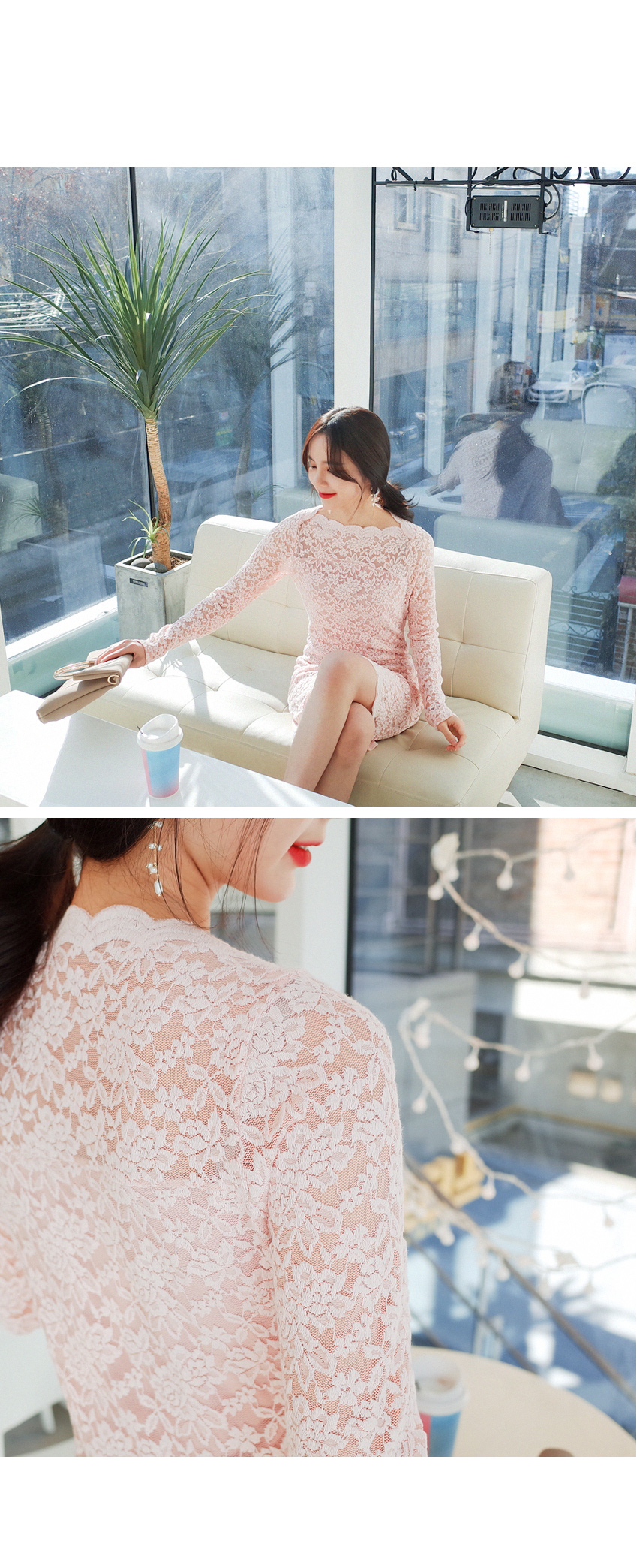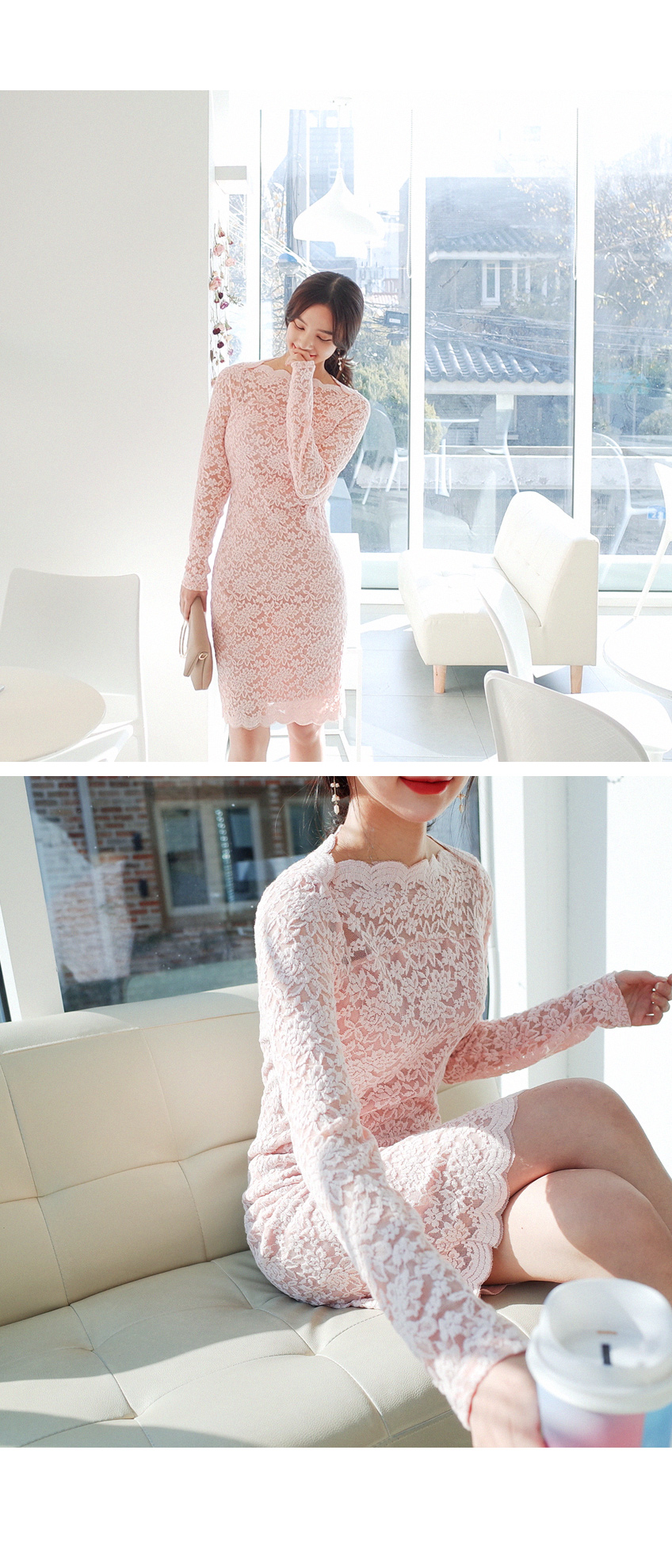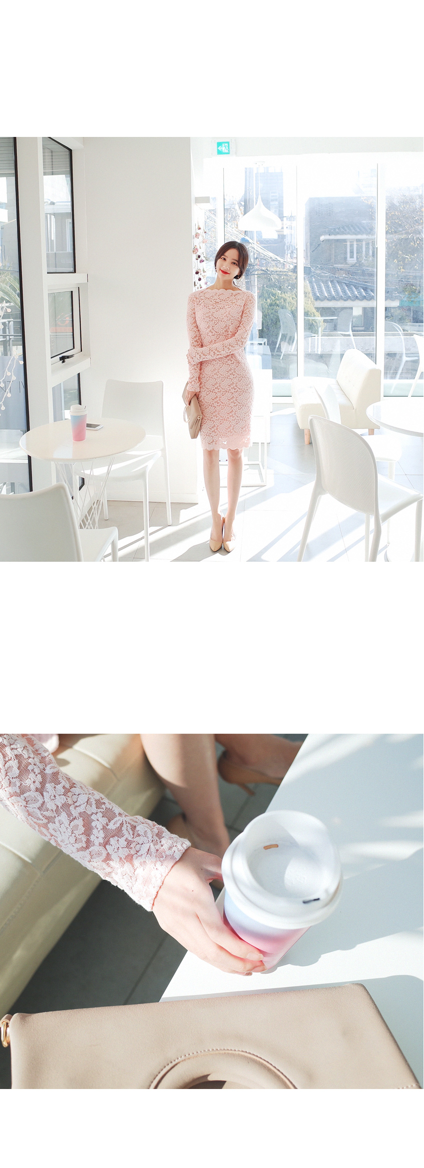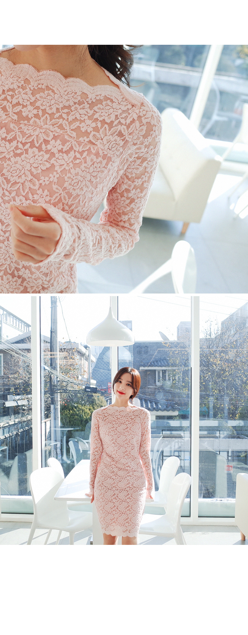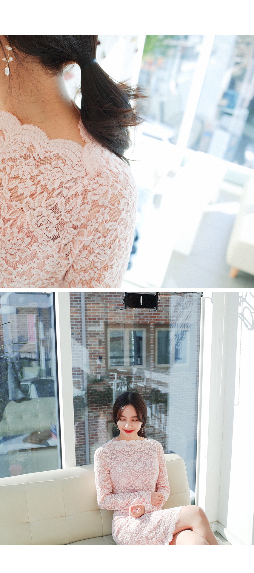 여성스러운 레이스 원단으로 고급스러운 원피스입니다