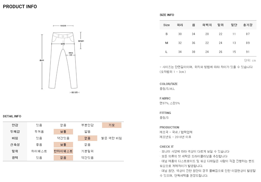 S,M,L사이즈로 제작되어 25-29사이즈분들께 추천드려요