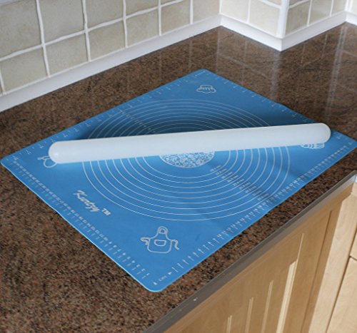 New Premium LARGE Fondant Dough Pastry Silicone Rolling Work Mat with Measuring Guide for Sugarcraft Cake Decorating ---light blue