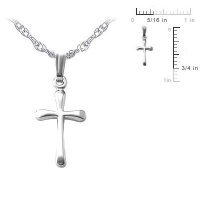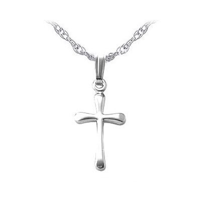 -. Title : Child 14K White Gold Cross with Rope Chain (15 inches)