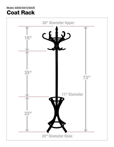 Headbourne 8000 Floor Standing Hat and Coat Rack with Umbrella Stand, Solid Wood with Dark Walnut Finish