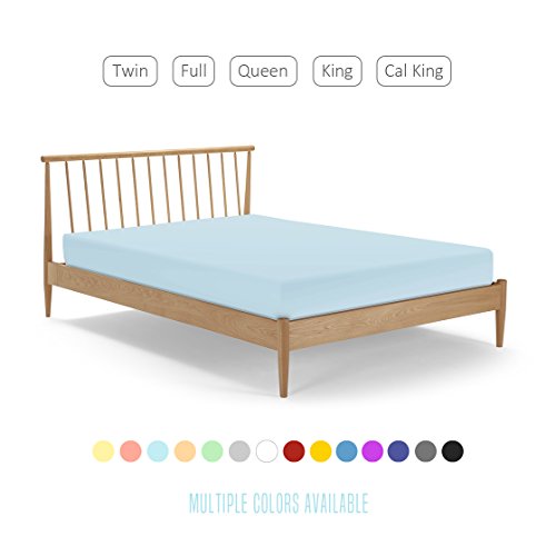 Luxe Bedding 100% Cotton Solid Color Deep Pocket Fitted Sheet - Hotel Quality - Wrinkle, Fade, Stain and Abrasion Resistant (Twin, Sky)