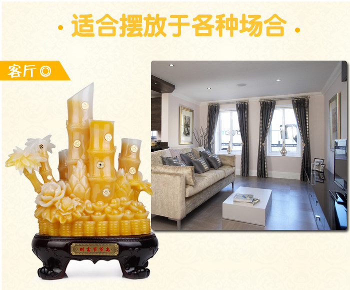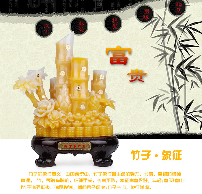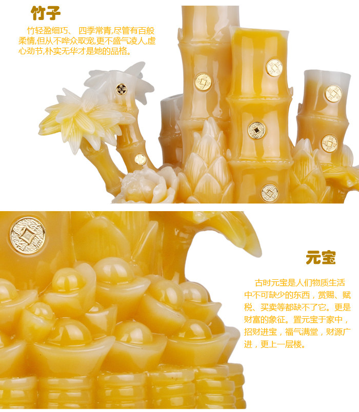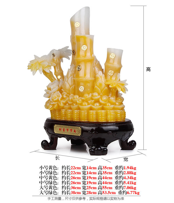 Product features: Wealth?steadily high,?bamboo?evergreen the four seasons,?section,hollow.?Evergreen:?full of vitality and vigor,?vitality.?Section:?integrity.Hollow:?modesty.?Bamboo has?"would rather break than bend"?spirit?and"straight"?metric,?it?simple?and?honest?nature,?quality?elegant,?quiet andhappy?shape,?the so-called "not?unearthed when?the?festival,?untilLingyun?more open-minded. Product?introduction: Name:?wealth?steadily high. Material:?resin Size: small?yellow:?length 22cm width?14cm high?35cm (other?details below) Weight:?small?yellow: about 1.94kg Small?green: about 2.88kg Medium?yellow: about 4.34kg Medium?green: about 5.41kg Large yellow: about 7.06kg Large?green: about 6.77kg Packaging:?packaging |