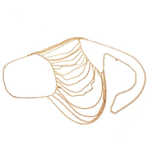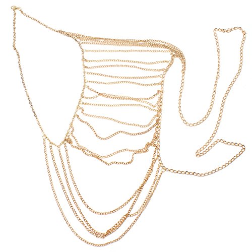 Product DescriptionMaterial: metalColor: goldSize: The total length of about 80cmWeight: 0.092kgProduct List2 golden tassels bikini chain0