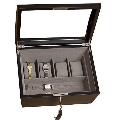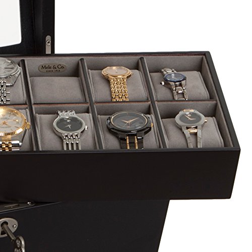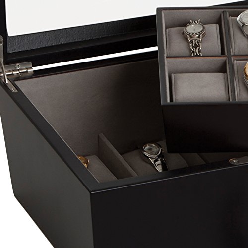 Mele & Co. Royce Locking Glass Top Wooden Watch Box (14 Sections, Java finish)