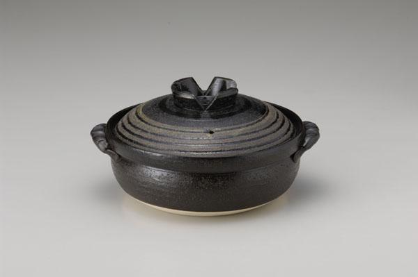 手軽に直火・IHどちらでも!高出力3kw対応土鍋。 ※サプライヤー直送品 ご注文後5~6営業日後の出荷となります【商品名】8-11669 萬古焼 9号IH土鍋 黒釉ライン