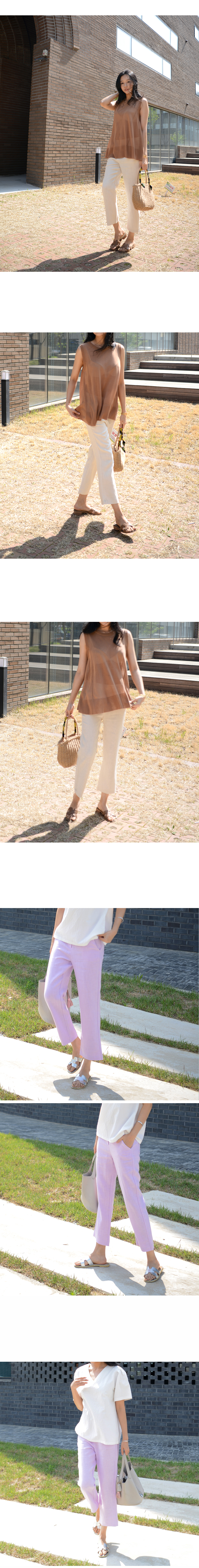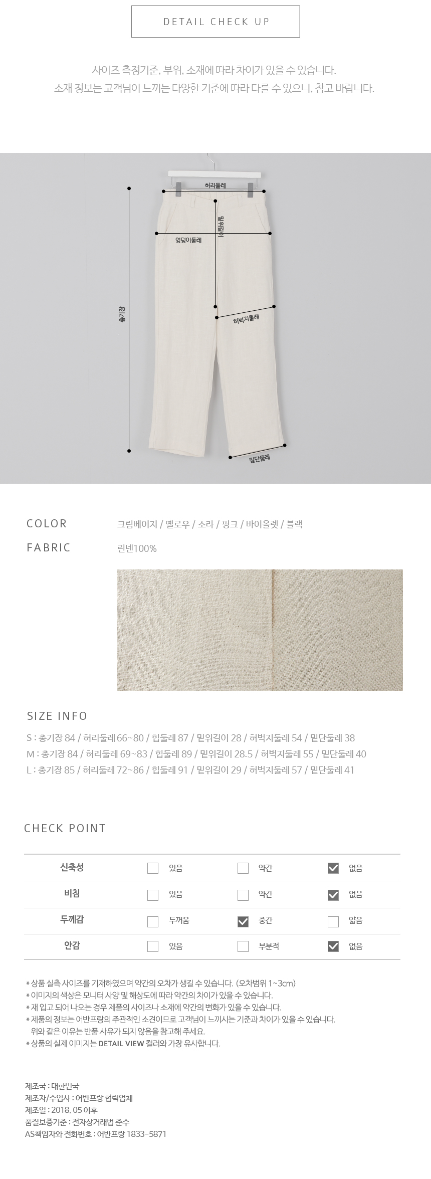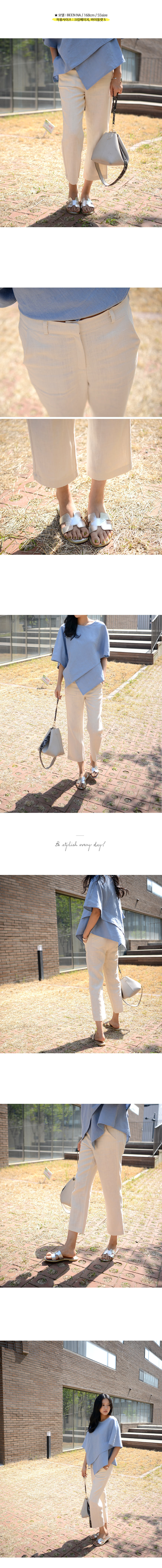 린넨 100%로 네추럴한 소재감이 시원하고 발목이 드러나는 산뜻한 길이에 다양한 상의와 매칭하기 좋은 아이템이랍니다