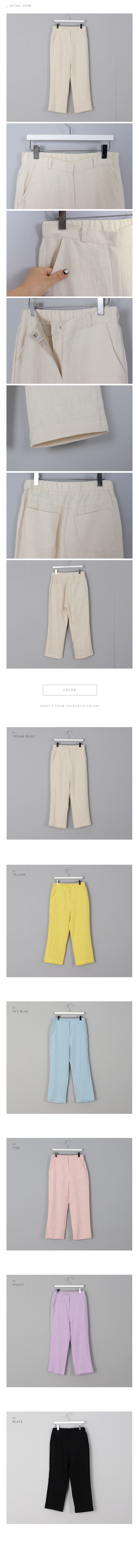 통이 과하게 넓지 않은 일자핏으로 날씬해보이는 핏에 산뜻한 길이감과 컬러들이 사랑스러운 린넨 팬츠랍니다