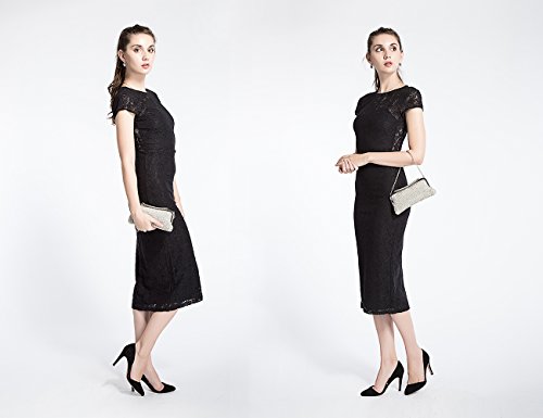 [Description] Elegant design with sparking beadings_ silky satin lining and beautiful metal handle Approximate Dimensions: Exterior - 8.5`` L X 1.2`` W X 3.8`` H; Handle Drop - 7``; Long Chain Strap - 47`` L; Interior Pocket - 4`` L X 2.5`` H The luxurious and spacious satin lined interior provides plenty of room for your credit card_ cellphone_ ID_ lipstick_ and other small essentials Carry this charming evening bag as a clutch_ grab hold of the metal top handle_ or slip the chain shoulder strap over an arm when you wish to go hands-free Ideal for any special formal occasions or a night out. Great gift idea for wedding_ anniversary_ valentine``s day_ or Christmas