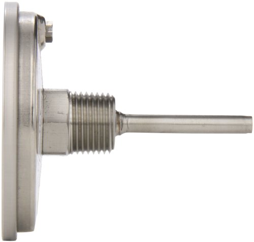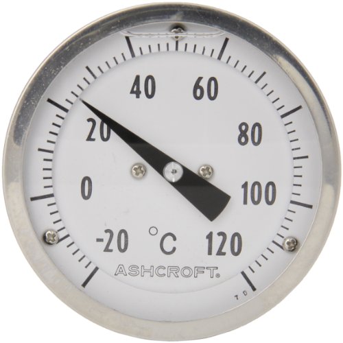Ashcroft EL Series Bimetal Thermometer, 3" Dial Size, 1/2" NPT Rear Stem Connection, 2-1/2" Stem Length, -20°C-120°C Temperature Range