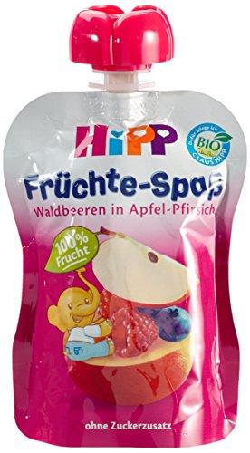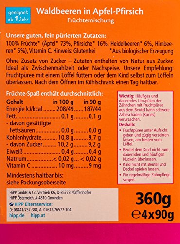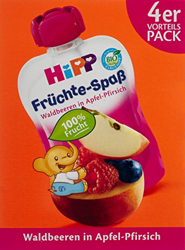 -. Title : Hipp Früchte-Spaß Waldbeeren in Apfel-Pfirsich 4 x 90g, 4er Pack (4 x 360 g)