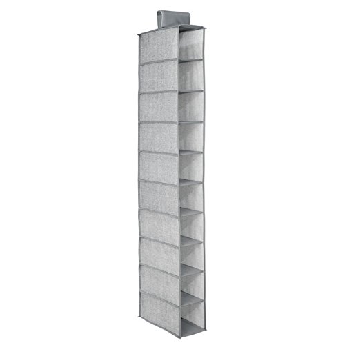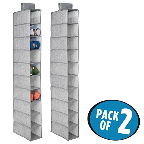 mDesign Fabric Hanging Closet Storage Organizer, for Shoes, Handbags, Clutches - Pack of 2, 10 Shelves, Gray