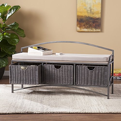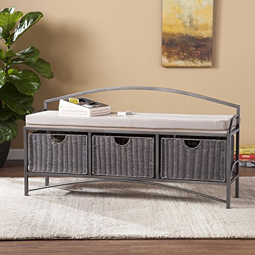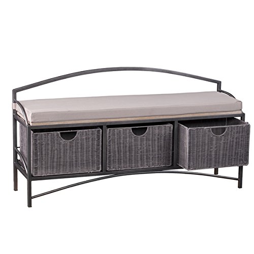 -. Title : Harper Blvd Shabby Chic Johnson Black Powder Coated Iron Frame Storage Bench Grey Finish