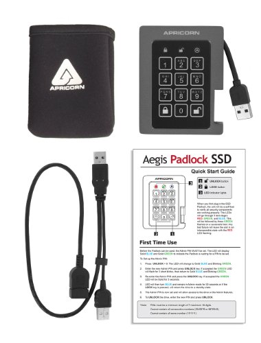 Apricorn Aegis Padlock 240 GB SSD 256-Bit, FIPS 140-2 Level 2 Validated Ruggedized USB 3.0 Encrypted External Portable Drive